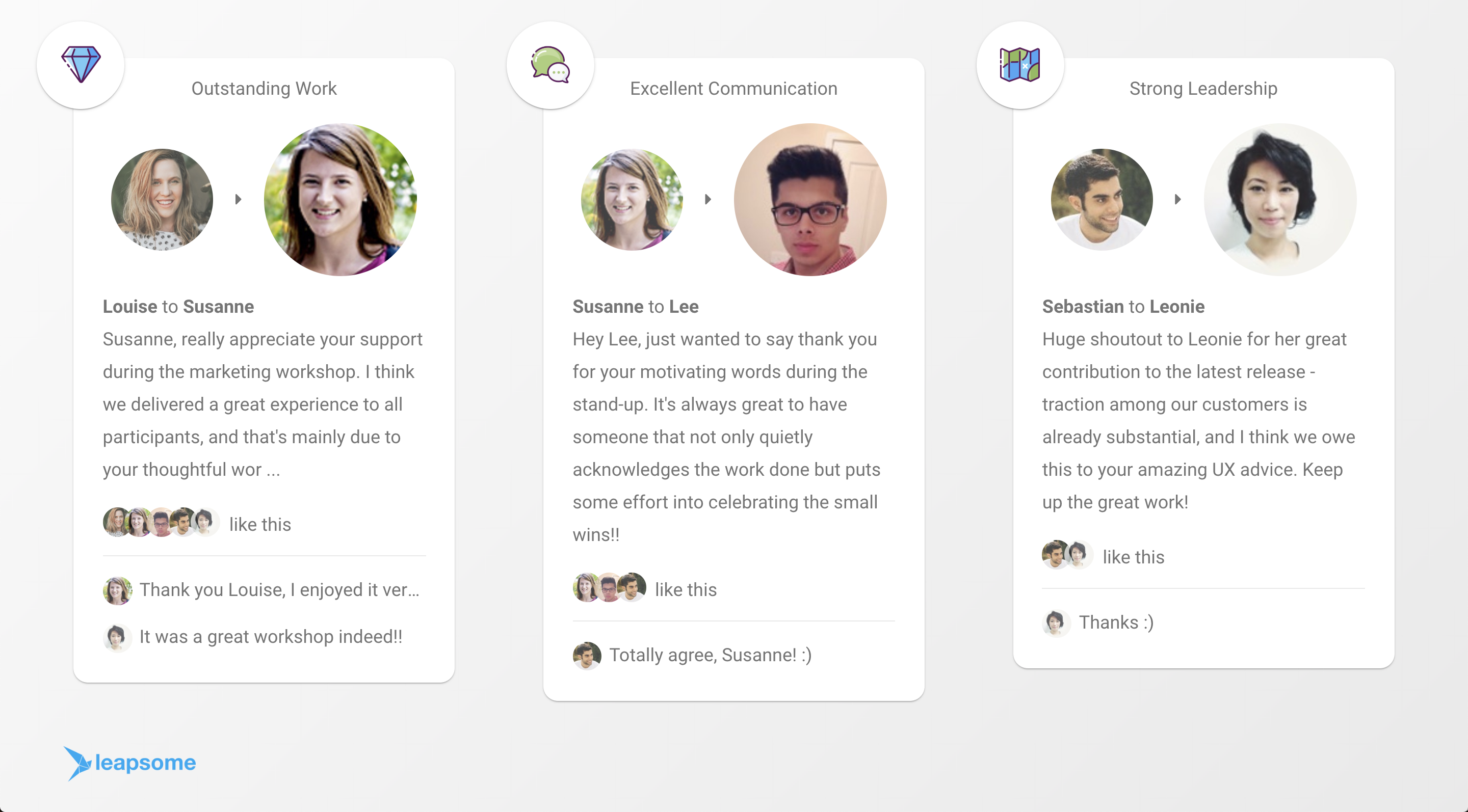 We know that a healthy feedback culture is one that actively celebrates its employees’ strengths and achievements. Encouraging praise between one another creates an environment where people trust that their work will be recognized, as well as fostering better work relationships.