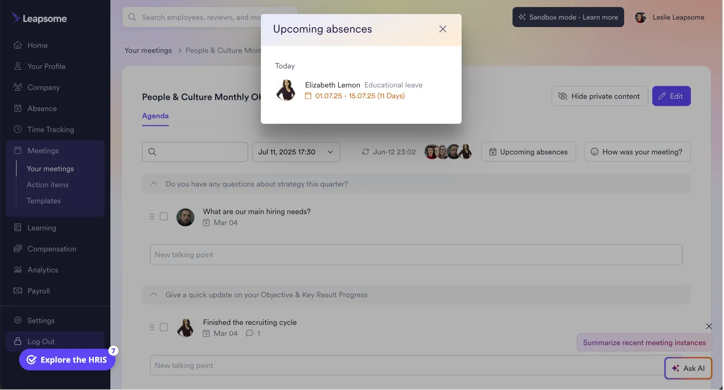 The AI Copilot now connects to past reviews. You can ask questions, reflect on past input and explore insights with the right context. Visibility rules stay intact and growth conversations just got a whole lot easier.