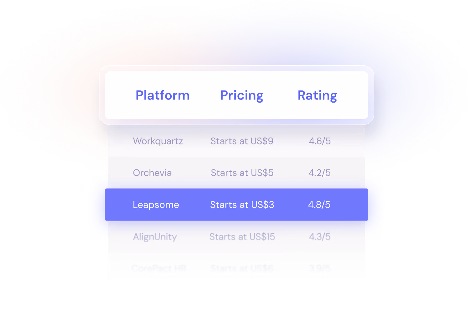 Leapsome ist eine umfassende HR-Plattform, die entwickelt wurde, um Ihr Unternehmen zu einem besseren Arbeitsplatz zu machen, indem sie jeden Aspekt der Mitarbeitererfahrung verbessert.
