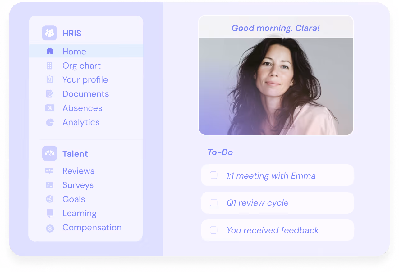 An AI-powered HR platform that aligns core HR, structured performance, and development, built for regulated, knowledge-intensive life sciences organizations.